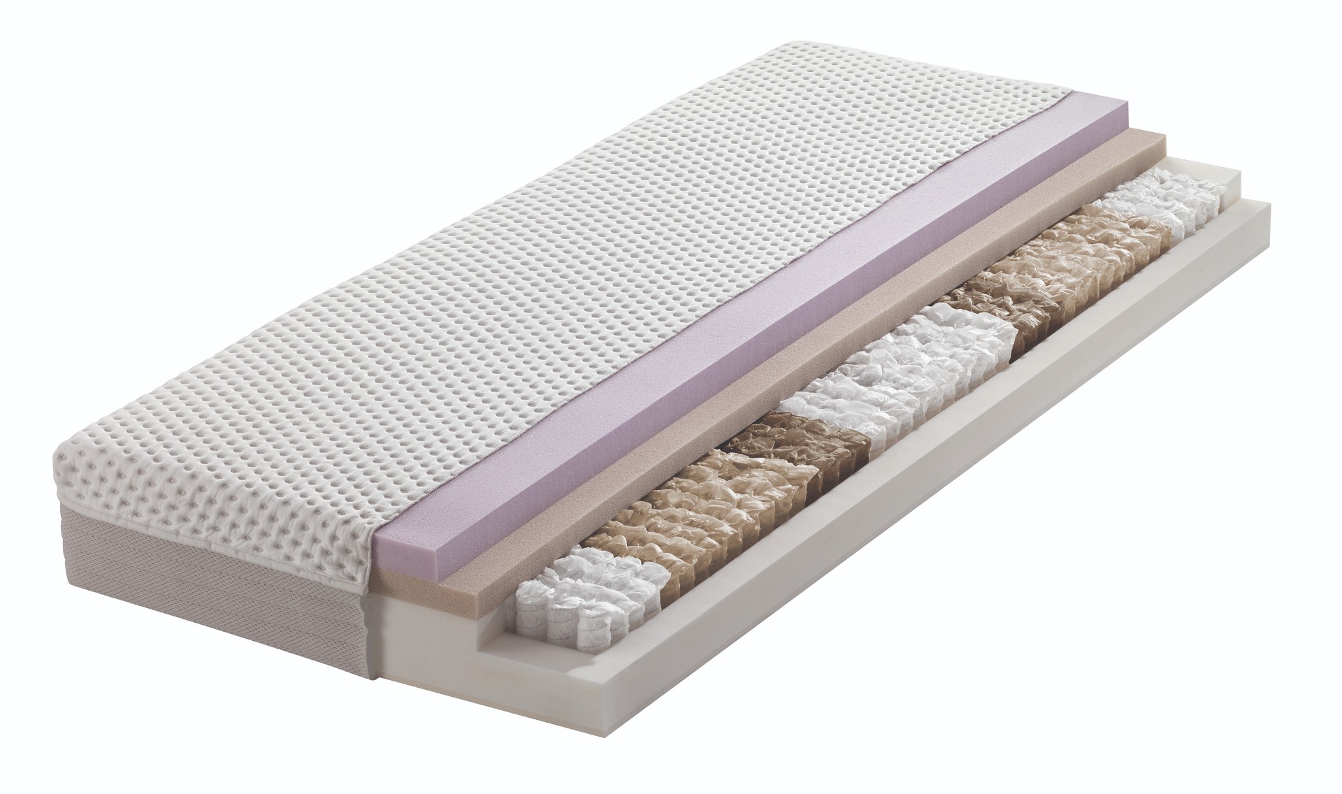 - Pružiny, jednotlivě všité do kapes, s různými pružinovými silami jsou dokonale přizpůsobeny tělovým zónám ramen, lordózy a pánvové oblasti