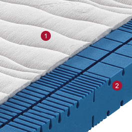 Prodyšná sedmizónová studená pěna s otevřenými póry zaručuje prostřednictvím své vysoké bodové elasticity dokonalé uvolnění od tlaku.