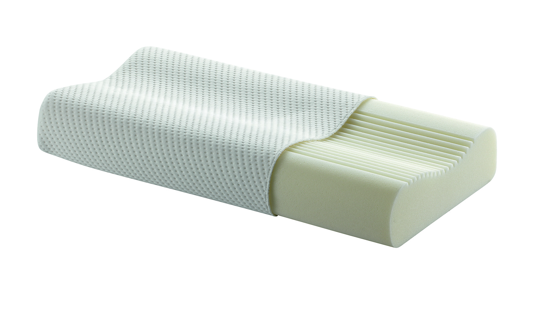 Anatomický polštář z vyscoelastické měkké pěny se zárukou ideálního kopírování kontur hlavy a krku.